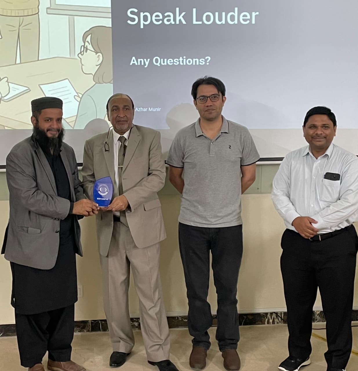 Students actively participated by asking the guest speaker questions, leading to an engaging discussion. At the end of the session, the Chairman, Civil Engineering Department, Dr. Adnan Nawaz presented a souvenir to the guest speaker as a token of appreciation with a vote of thanks.