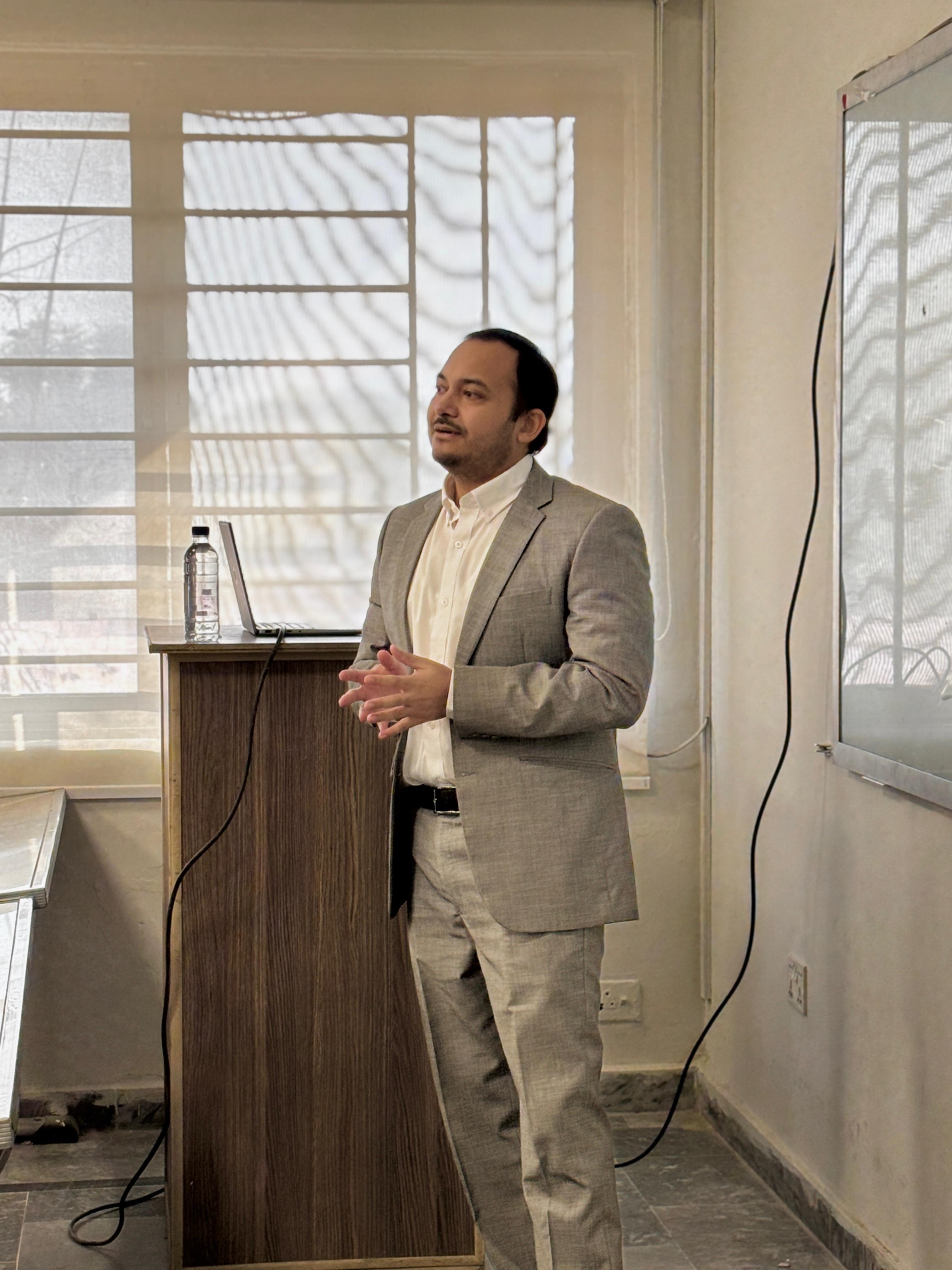 The guest speaker presented the restoration work done on significant heritage sites in Pakistan, focusing on the materials used in their construction and evaluating their structural strength. His study covered key historical landmarks, including Rohtas Fort in Jehlum, Baghsar Fort and Ramkot Fort in Azad Jammu and Kashmir (AJK), and the Katas Raj Temple. By examining the composition of building materials such as stone, brick, and mortar, he aimed to understand their durability and preservation needs. Additionally, various techniques, including material testing and structural analysis, were employed to determine the strength of these historical structures, ensuring their long-term conservation and resilience against environmental and human-induced damage.