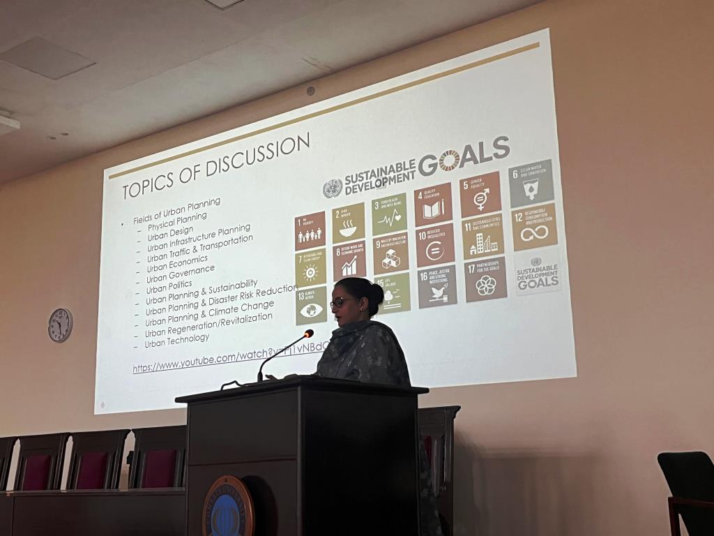 The guest speaker highlighted the importance of sustainable urban planning in balancing social, economic, and environmental needs to ensure livable, resilient cities. Key focus areas included eco-friendly infrastructure, efficient land use, renewable energy, green spaces, sustainable mobility, affordable housing, resource conservation, and urban design that blends aesthetics with cultural identity.
