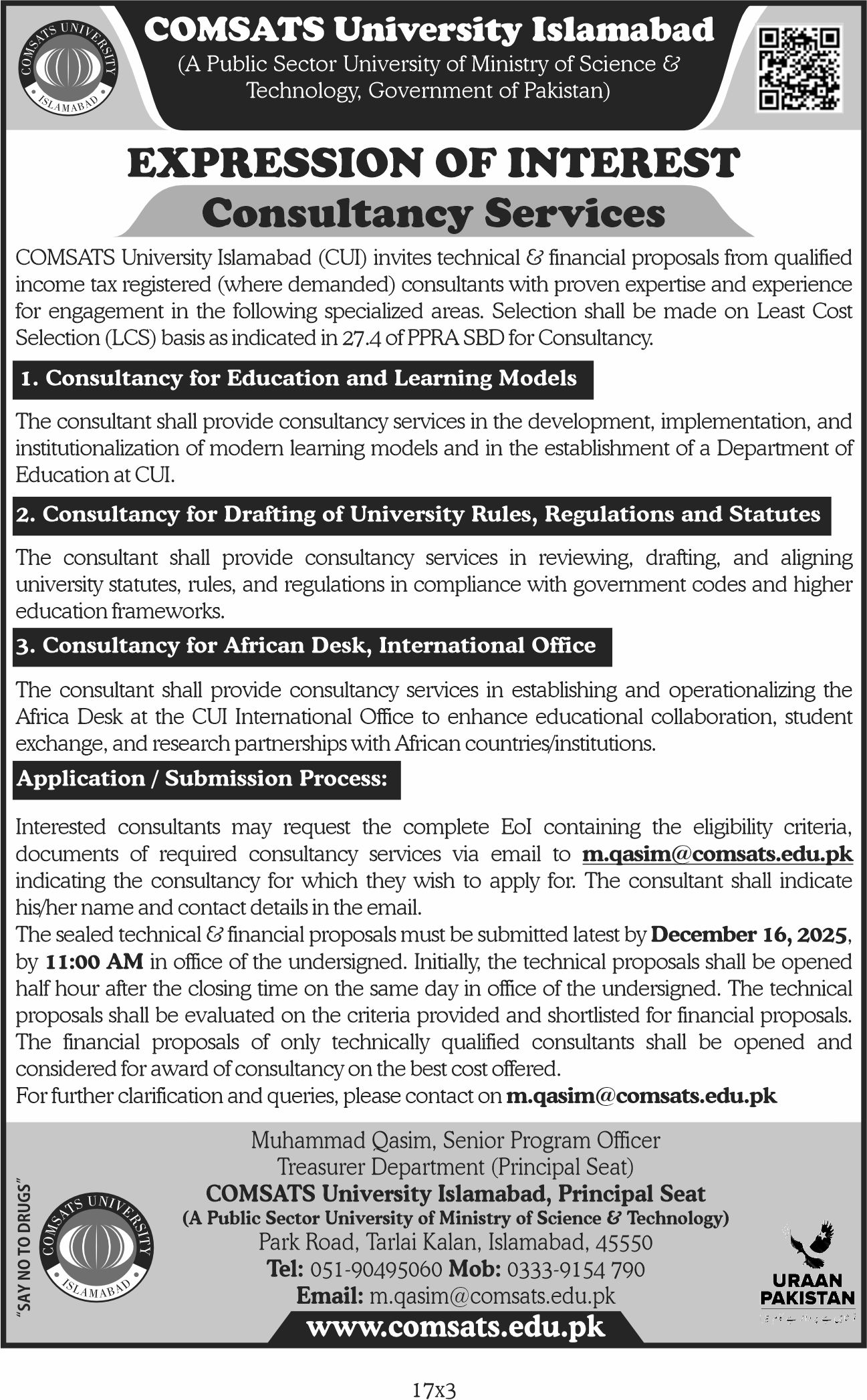 Expression of Interest for Consultancy Services at CUI Principal Seat